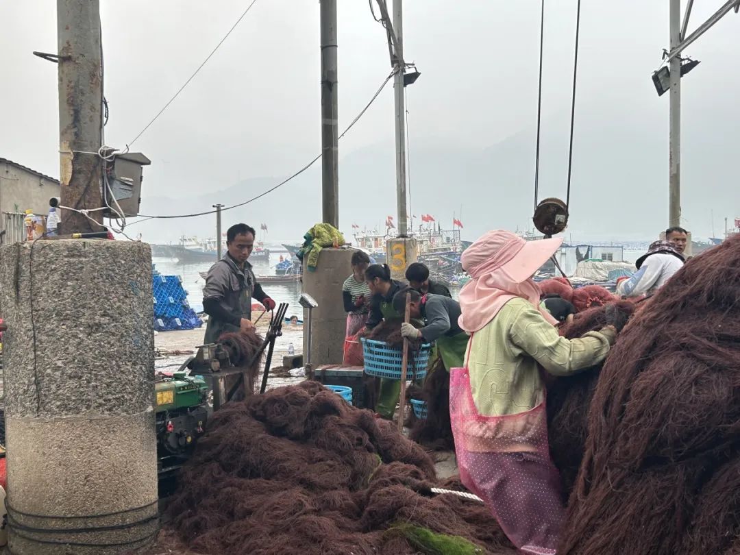 清晨,遼闊的海面伴隨著清涼的海風(fēng)和陣陣的小雨。考察團(tuán)一行共同來到了如山水油墨畫般的養(yǎng)殖海域。即使海面能見度不足,但也難掩大家的熱情。