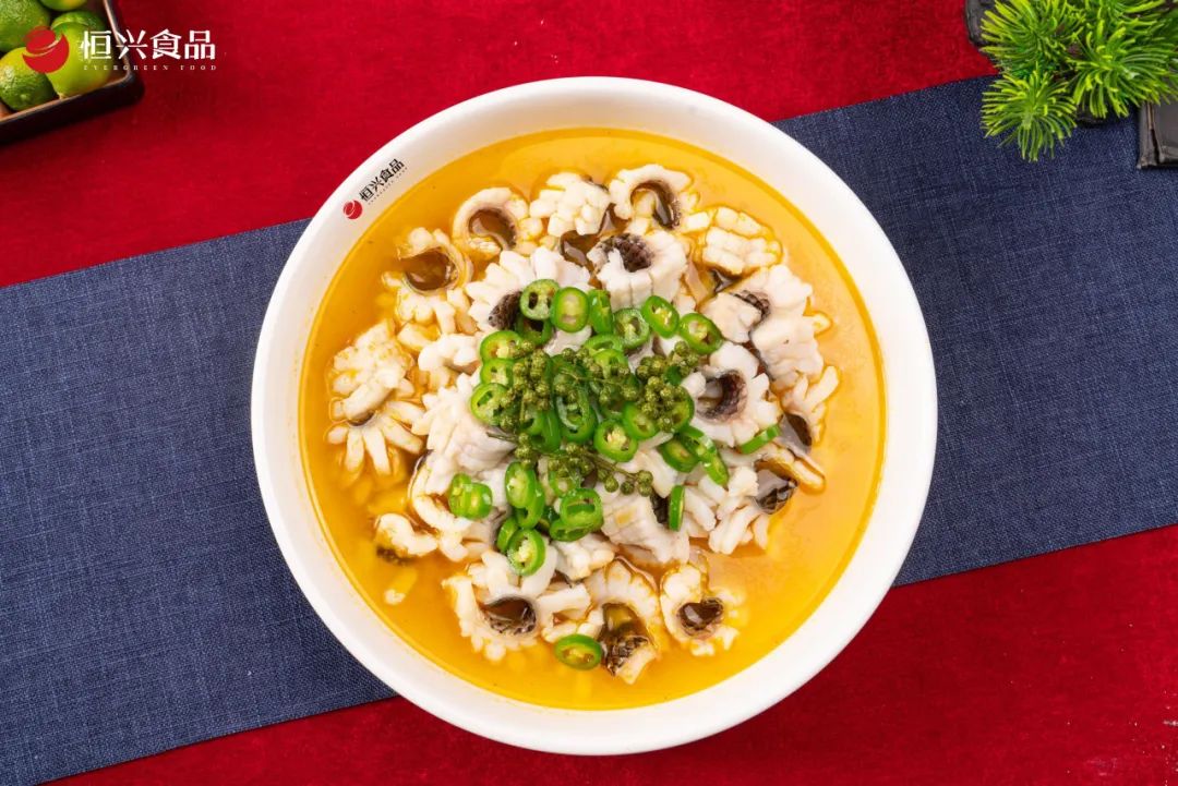 同時,恒興水產食品事業(yè)部市場經理莫威向大家介紹了工廠最新的產品及對比優(yōu)勢,莫總表示恒興一方面致力提升黑魚產品的口感、魚片形態(tài)和肉質Q彈程度;另一方面還完善了適用多場景的黑魚應用產品體系。如標配應季火鍋的火鍋大刀魚片,魚片片型大且完整,少漿的魚片色澤更紅潤有光澤,涮煮后口感更緊實富有彈性,非常適合火鍋店擺盤出品。在外形的改良創(chuàng)新上,免漿黑魚花熟化后自然打卷,像一朵朵盛開的花,精致感直面客戶需求。