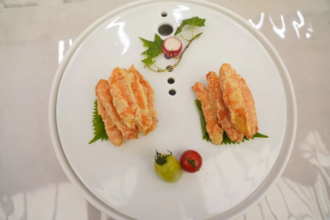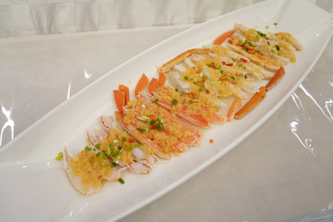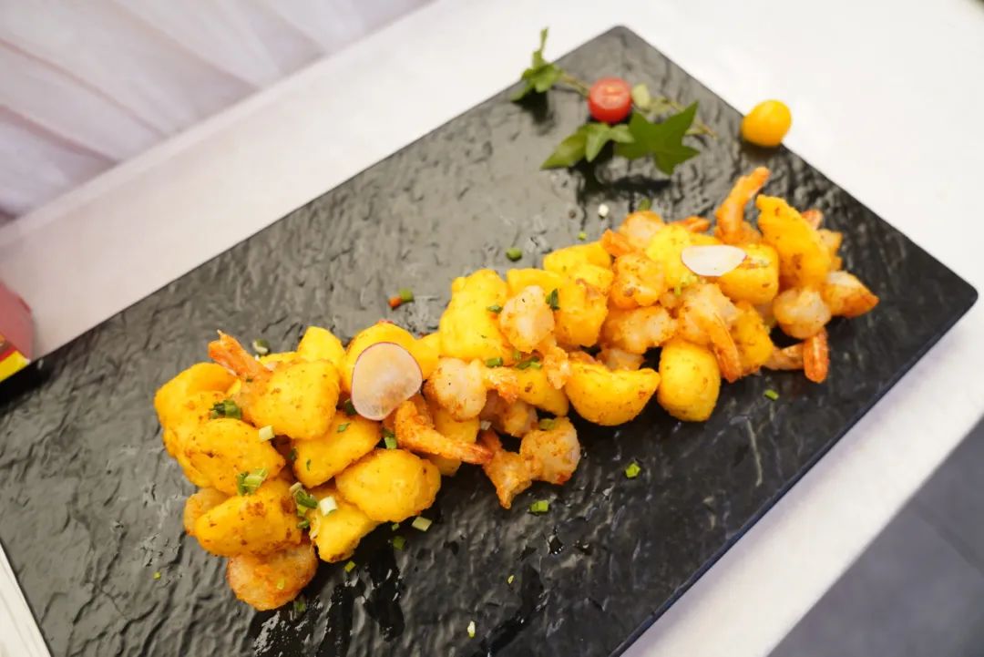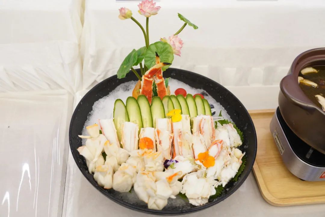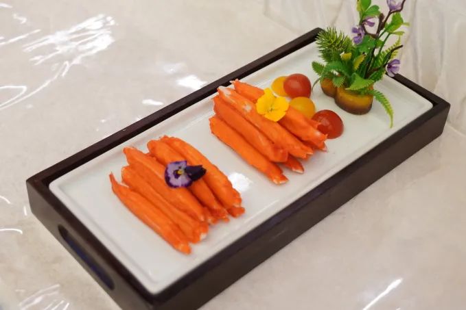 國聯(lián)水煮漢蝦、焗漢蝦、香酥漢蝦、漢蝦傳奇;美佳北海道蟹柳、只此蟹逅天婦羅蟹味柳、冷凍西蘭花、蝦滑海鮮包;良之隆小龍魚精選墨魚仔、淡水甲魚等食材經(jīng)過大師的烹飪色香味俱全,富有創(chuàng)意和營養(yǎng)價值,精美的詮釋了什么是食材“軟黃金”。