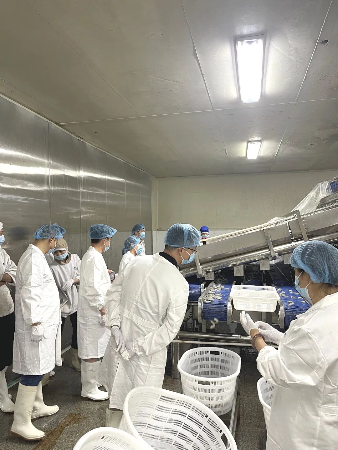 在工作人員的引領(lǐng)下,考察團近距離參觀了車間的整個加工流程,對一只只鮮活的蝦如何變成一份晶瑩剔透的蝦仁有了更深入的了解。完整的蝦仁生產(chǎn)線、先進的設(shè)備給考察團一行留下了深刻印象。